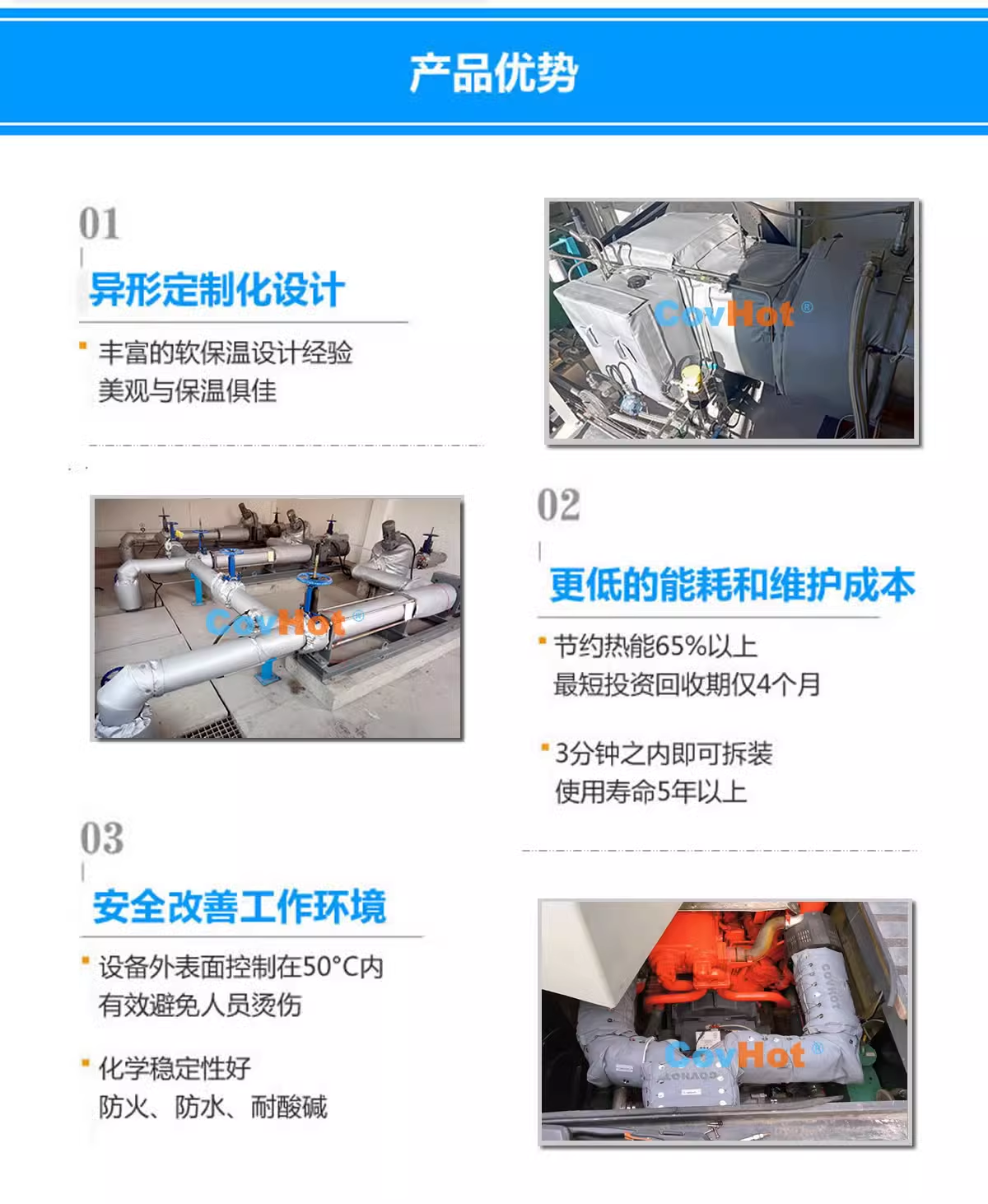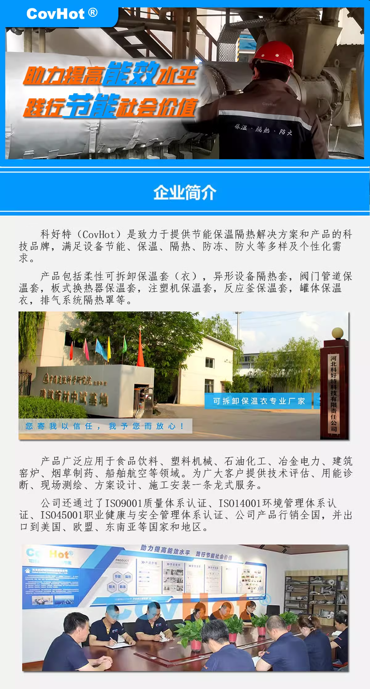 科好特(covhot)是一家專門從事柔性可拆卸納米氣凝膠保溫套研發(fā)制造銷售的公司,氣凝膠保溫套具有很廣闊的市場(chǎng)前景,如果您有相關(guān)需求,請(qǐng)與我們聯(lián)系,期待您的來電。