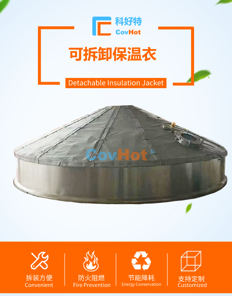 COVHOT®柔性可拆卸式糖化鍋鍋蓋保溫套保溫衣采用多層工業(yè)級材質(zhì)復(fù)合制成,常用的材料多達(dá)二十余種,考慮到設(shè)備溫度,現(xiàn)場工況,預(yù)期的節(jié)能效果等因素,另外根據(jù)保溫材質(zhì)的導(dǎo)熱系數(shù),憎水性,耐磨性,耐酸堿性,防火等級,耐油污性能等情況,科好特會為客戶選擇不同的材質(zhì)搭配,來滿足客戶多樣化及個性化節(jié)能保溫需求。